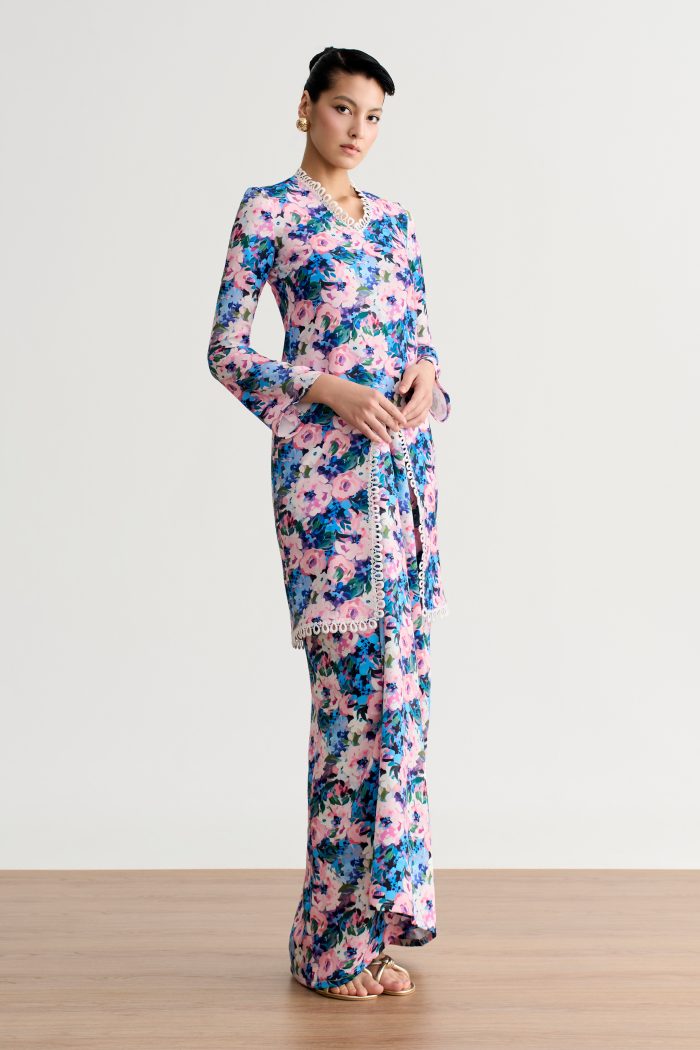 The Aria Tulle Kurung Kedah is a graceful expression of modern femininity infused with classic charm. Designed in a timeless Kurung Kedah silhouette, the top features a refined collar with button detailing, adding a polished and structured touch. Delicate lace gathered sleeves enhance the design with subtle texture and romantic elegance. Crafted from soft spandex…