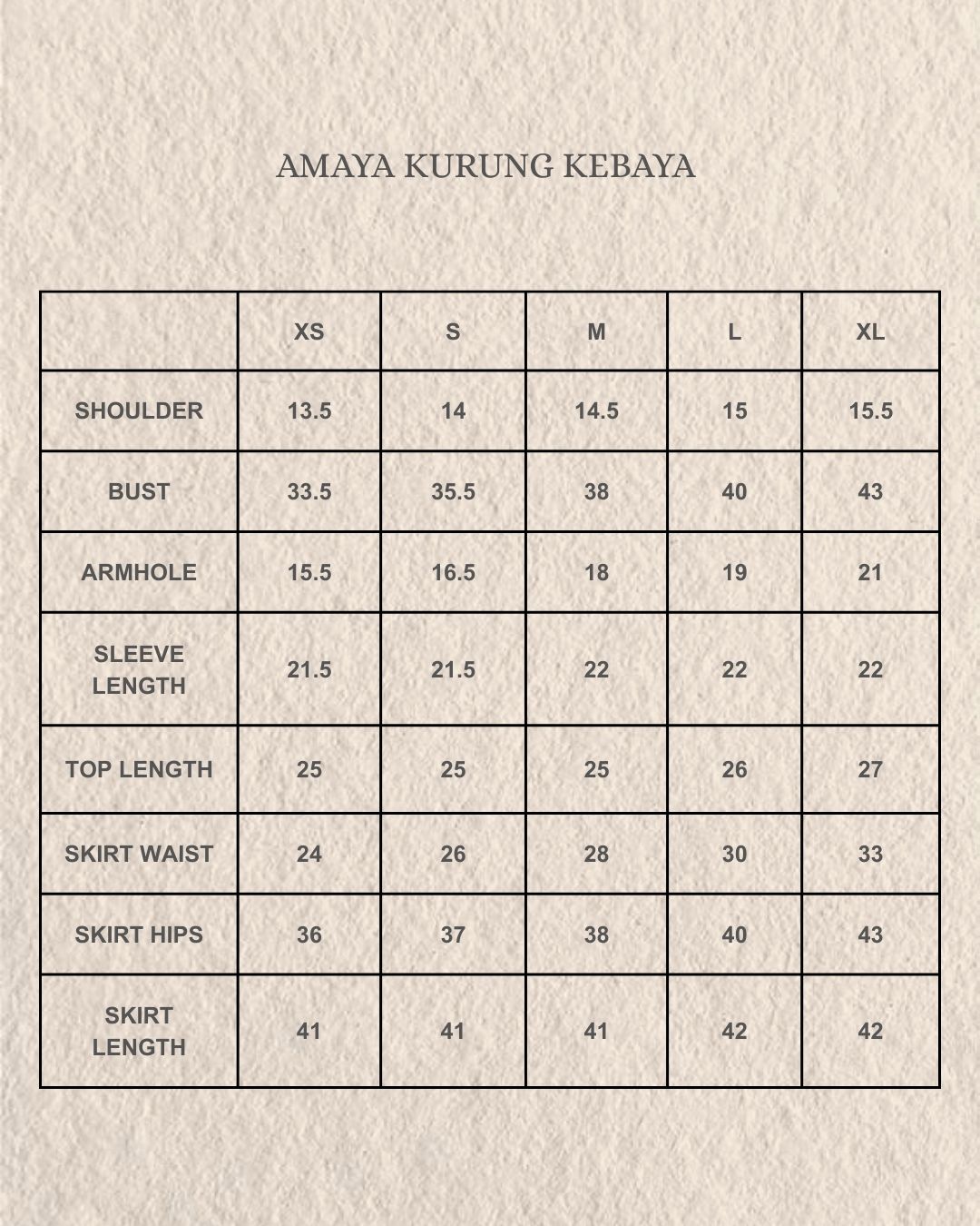 Perfect for both formal occasions and special celebrations, the Amaya Kurung Kebaya embodies sophistication, comfort, and understated luxury.