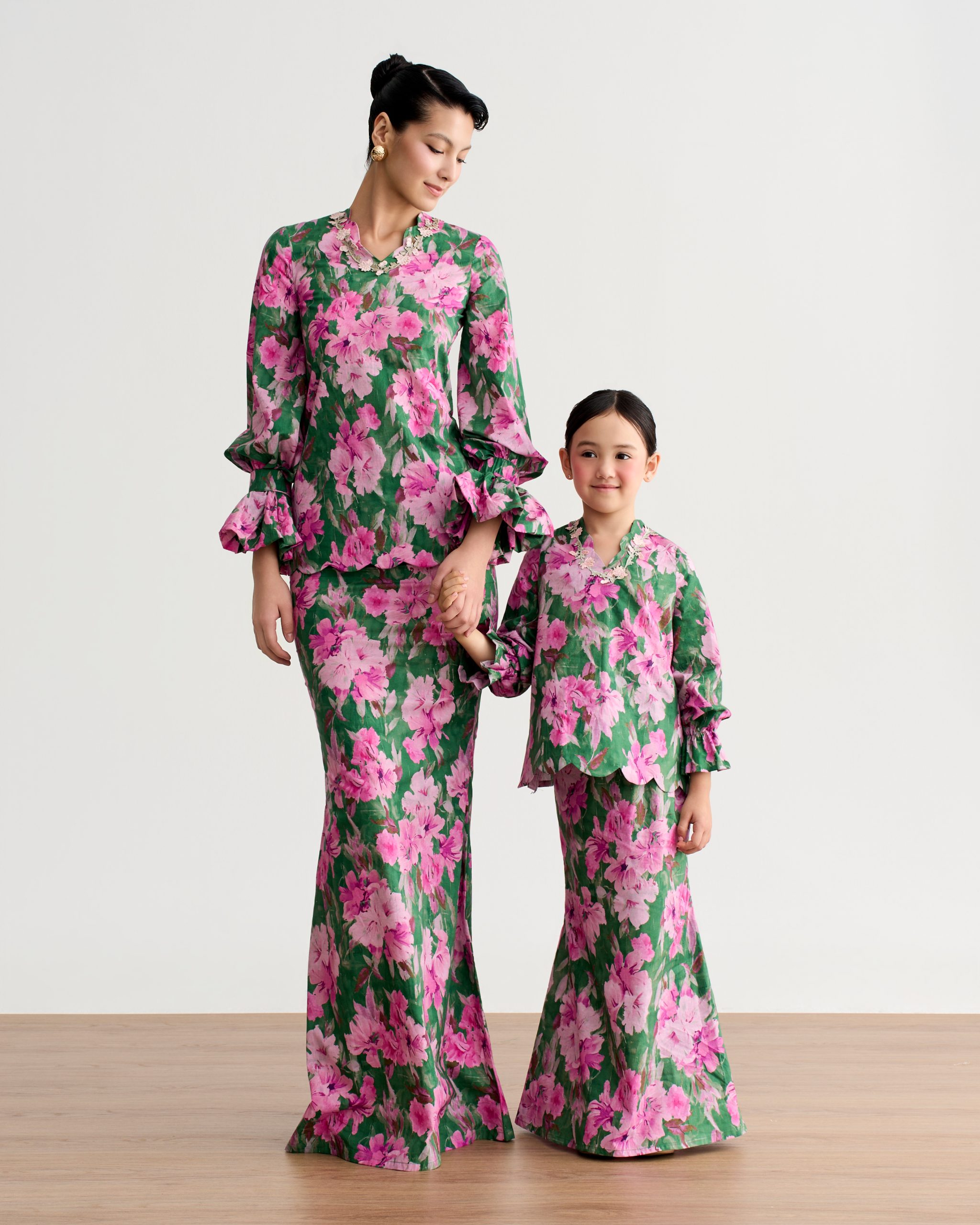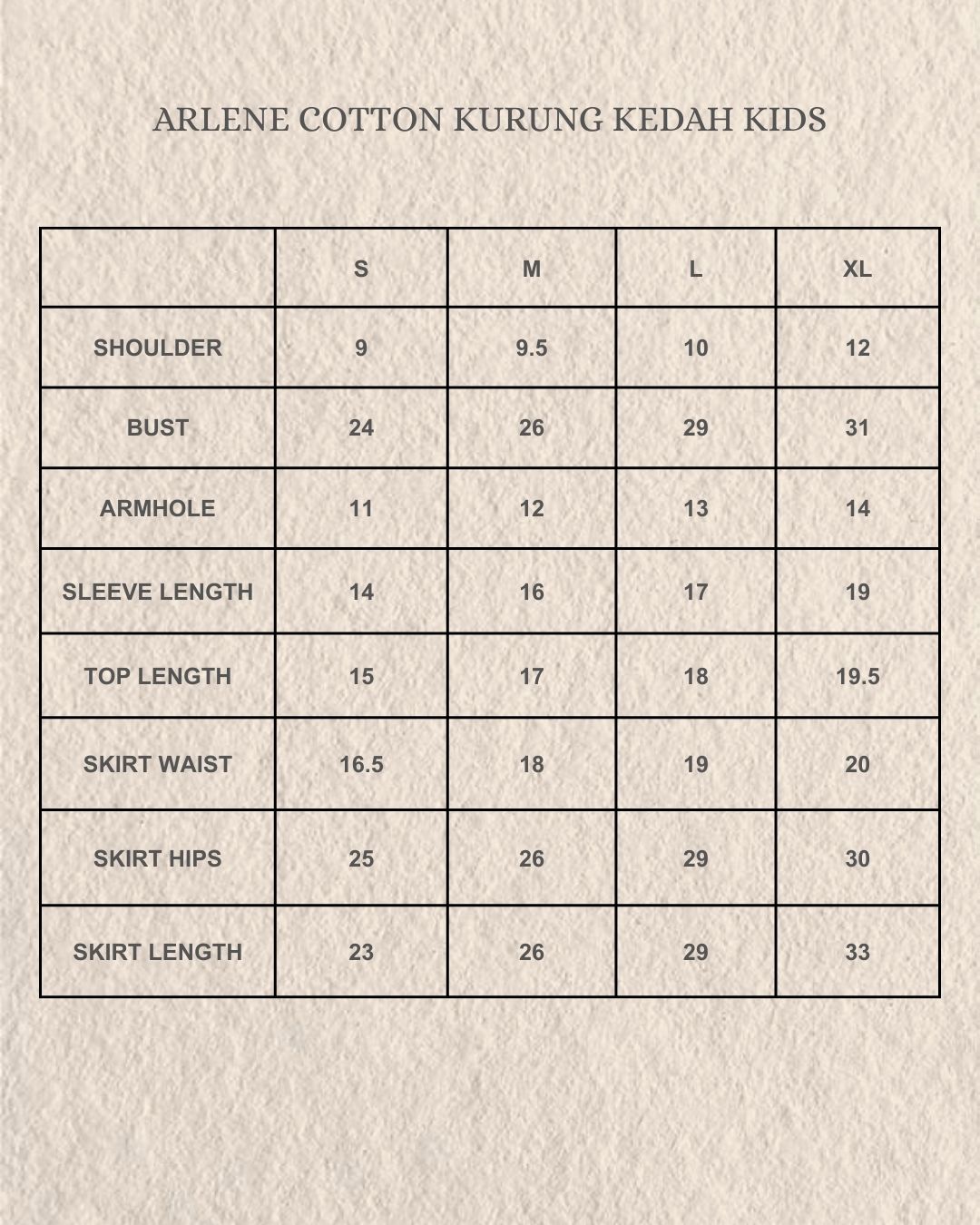 Designed with a full waistband and back zip, the Arlene Cotton Kurung Kedah Kids ensures comfort and ease for all-day wear. Crafted from soft cotton, it’s perfect for festive occasions or family celebrations, combining style, comfort, and playful elegance.
