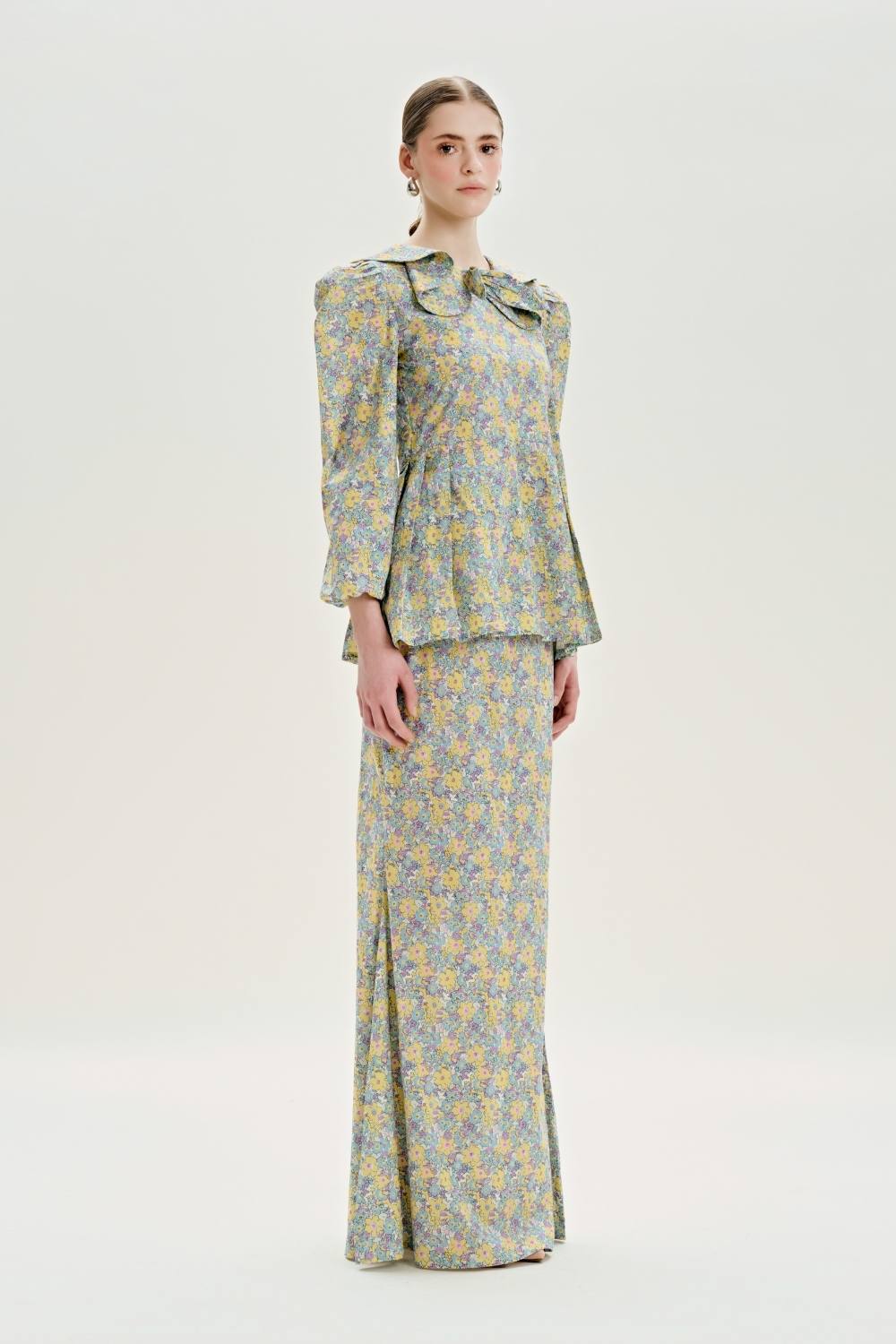 Asena is a cotton mini kurung with a unique ruffled neckline and a side-pleated bodice. Asena is also available in kids sizes.
