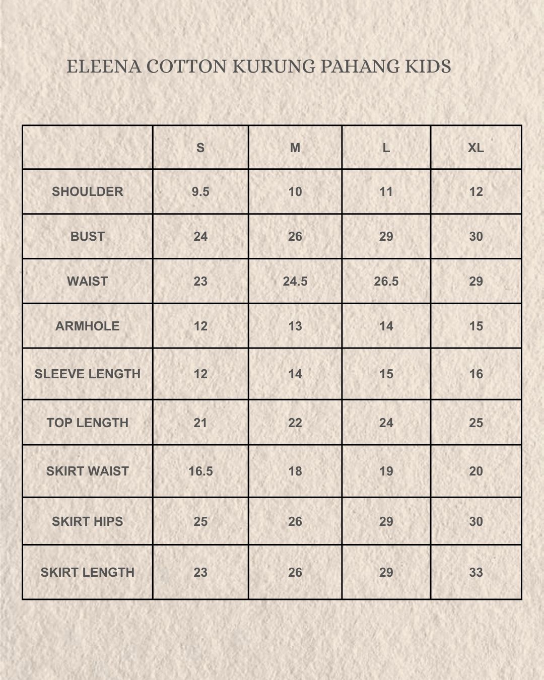 Designed with a full waistband and a back zip, the Eleena Kurung Pahang Kids ensures comfort and ease for all-day wear. Crafted from soft cotton, it’s perfect for festive occasions or special family celebrations, combining style, comfort, and playful elegance.