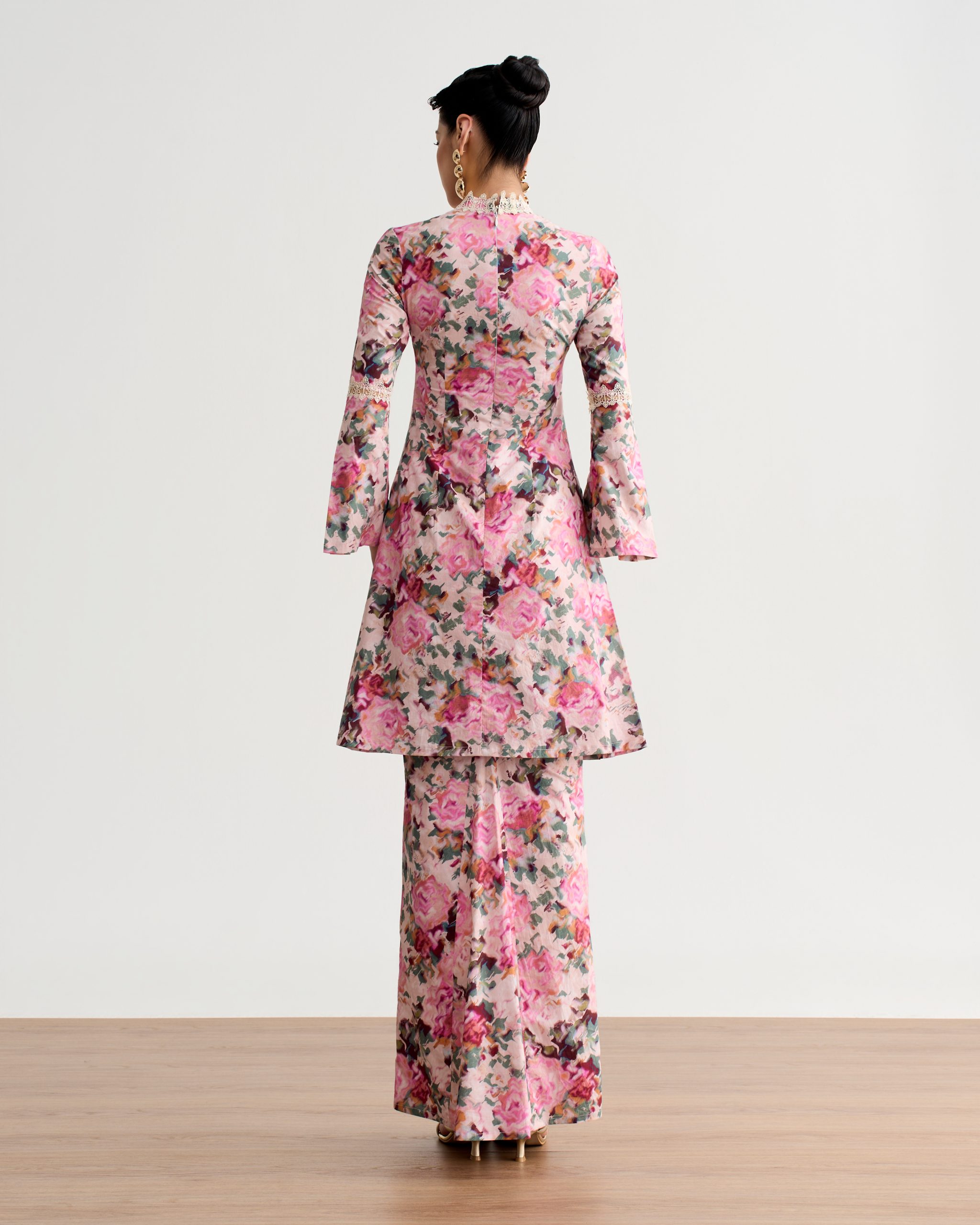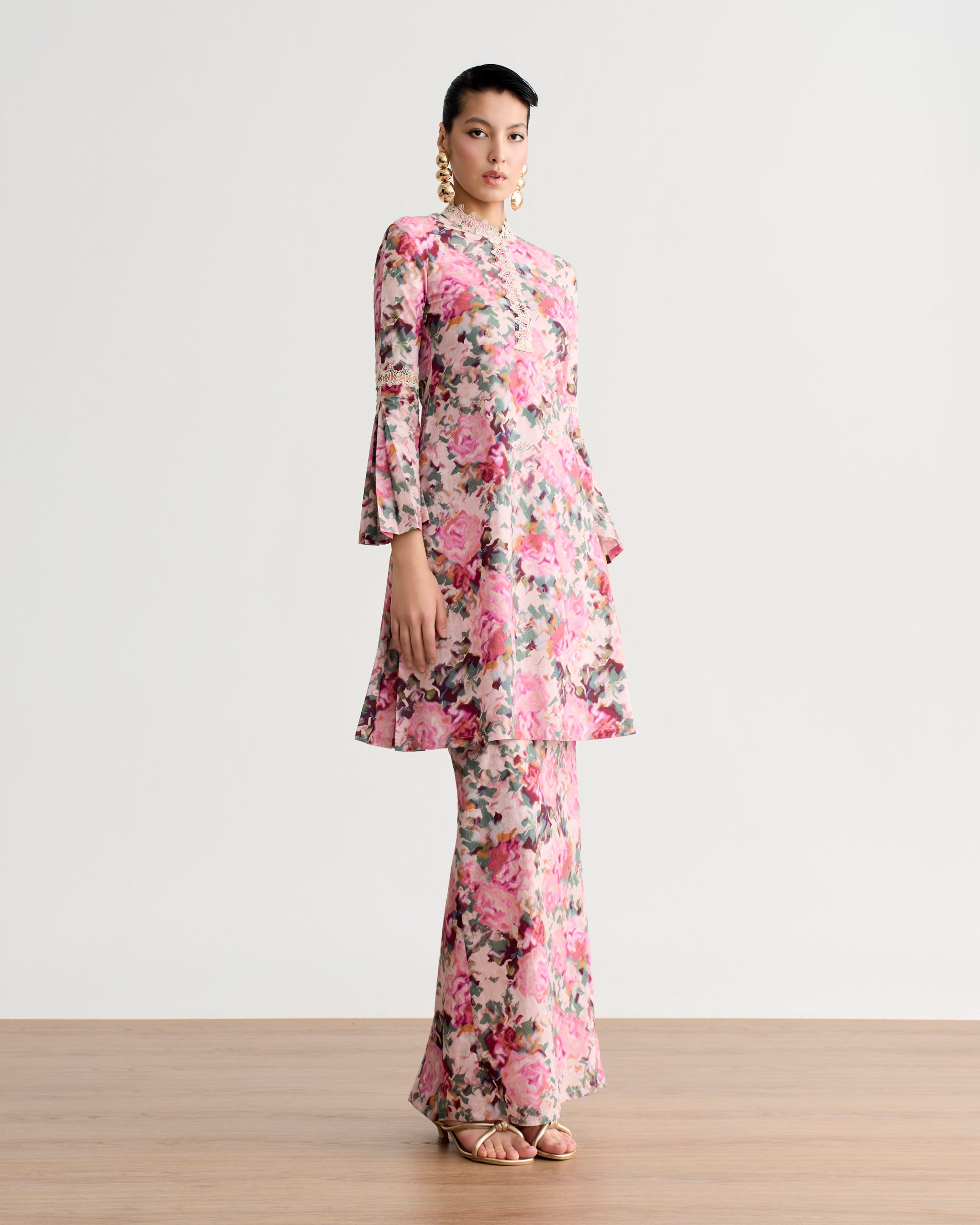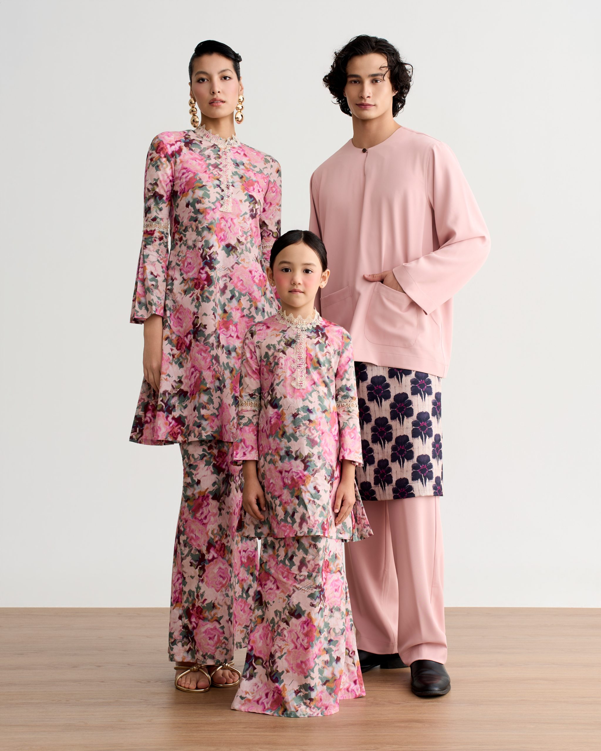 The Eleena Cotton Kurung Pahang is a graceful blend of classic tradition and modern refinement. Designed in a traditional Kurung Pahang silhouette, the top features a mandarin collar with lace detailing and pleated sleeves adorned with delicate lace, creating a soft, feminine appeal. Side fan pleats enhance the movement and elegance of the design.