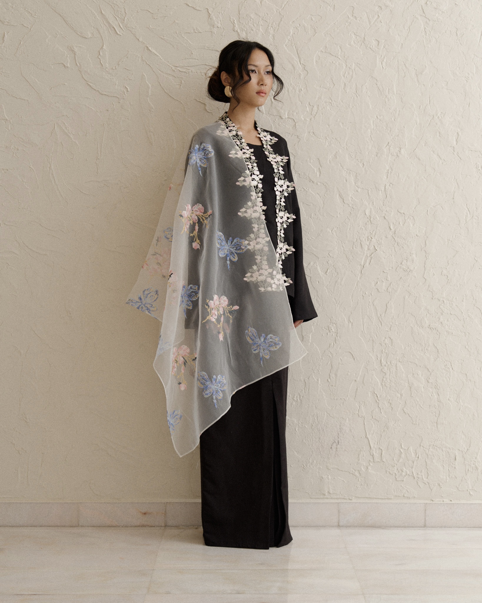 The Feirani Kurung Kebaya is a refined traditional ensemble designed for comfort and timeless elegance. Made from soft bamboo cotton, it offers a breathable and smooth feel, ideal for all-day wear. The kebaya features intricate Sulam Kerawang embroidery that adds a touch of classic sophistication, while the loose-fit silhouette ensures ease and graceful draping.