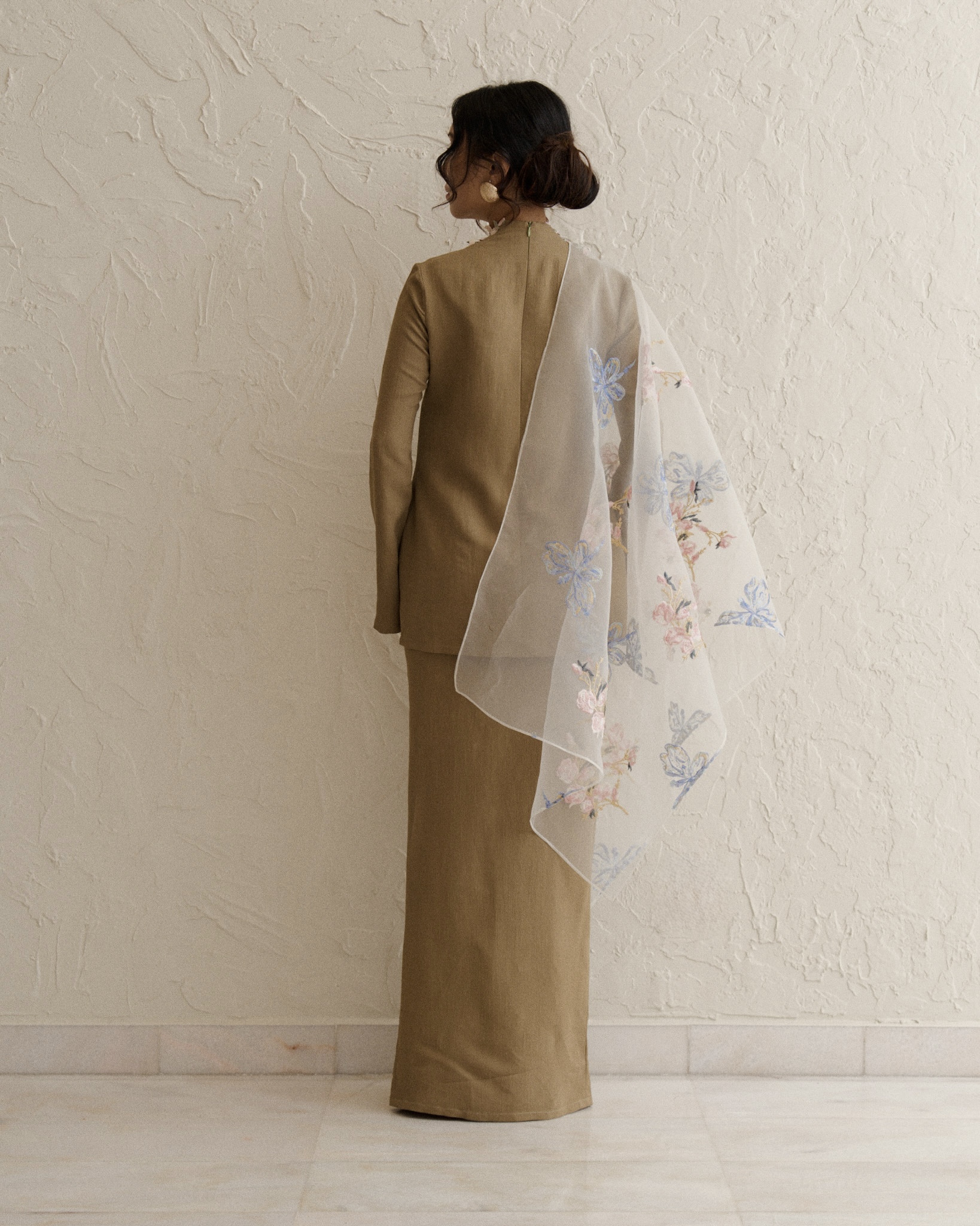 The Feirani Kurung Kebaya is a refined traditional ensemble designed for comfort and timeless elegance. Made from soft bamboo cotton, it offers a breathable and smooth feel, ideal for all-day wear. The kebaya features intricate Sulam Kerawang embroidery that adds a touch of classic sophistication, while the loose-fit silhouette ensures ease and graceful draping.