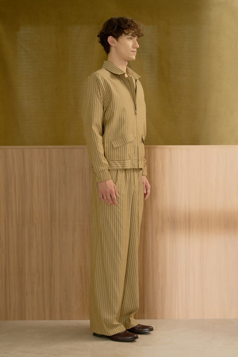 A trendy bomber jacket and pants set featuring a minimalistic striped pattern. Stylish and comfortable, this versatile ensemble effortlessly blends sporty and chic vibes, making it perfect for any casual or elevated look.