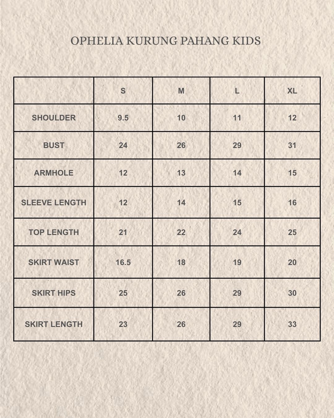 Designed with a full waistband for comfort, the Ophelia Kurung Pahang Kids ensures ease of wear for all-day activities. Crafted with care, it’s perfect for festive occasions, family gatherings, or special celebrations.