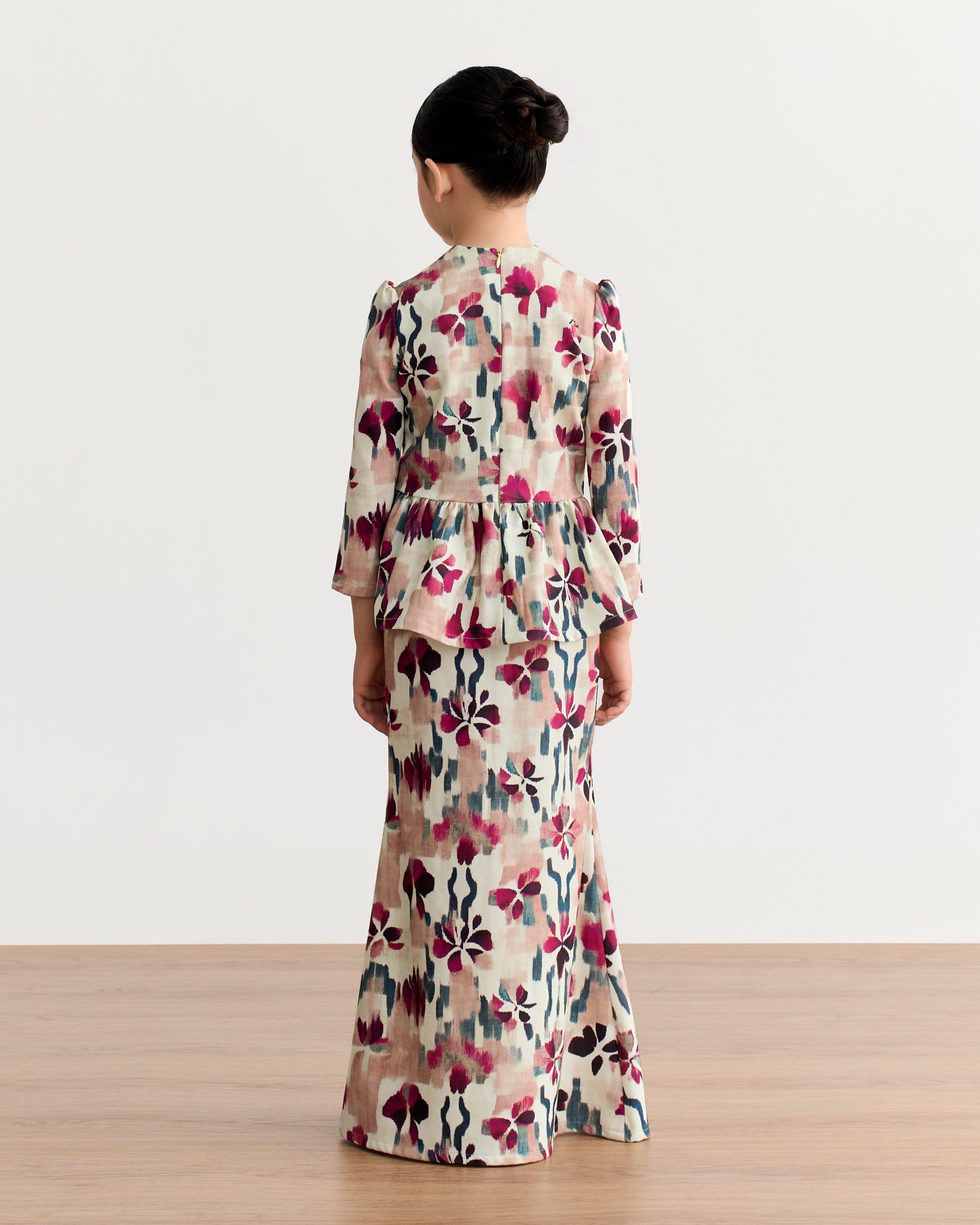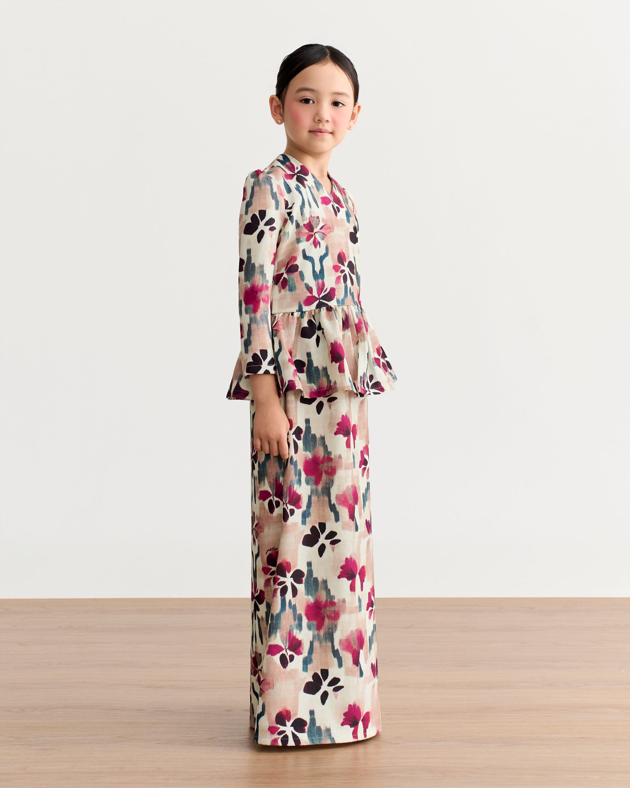 Crafted from soft polycrepe, the Raheen Peplum Kurung Kids is perfect for festive celebrations, family gatherings, or special occasions, offering both comfort and effortless style.