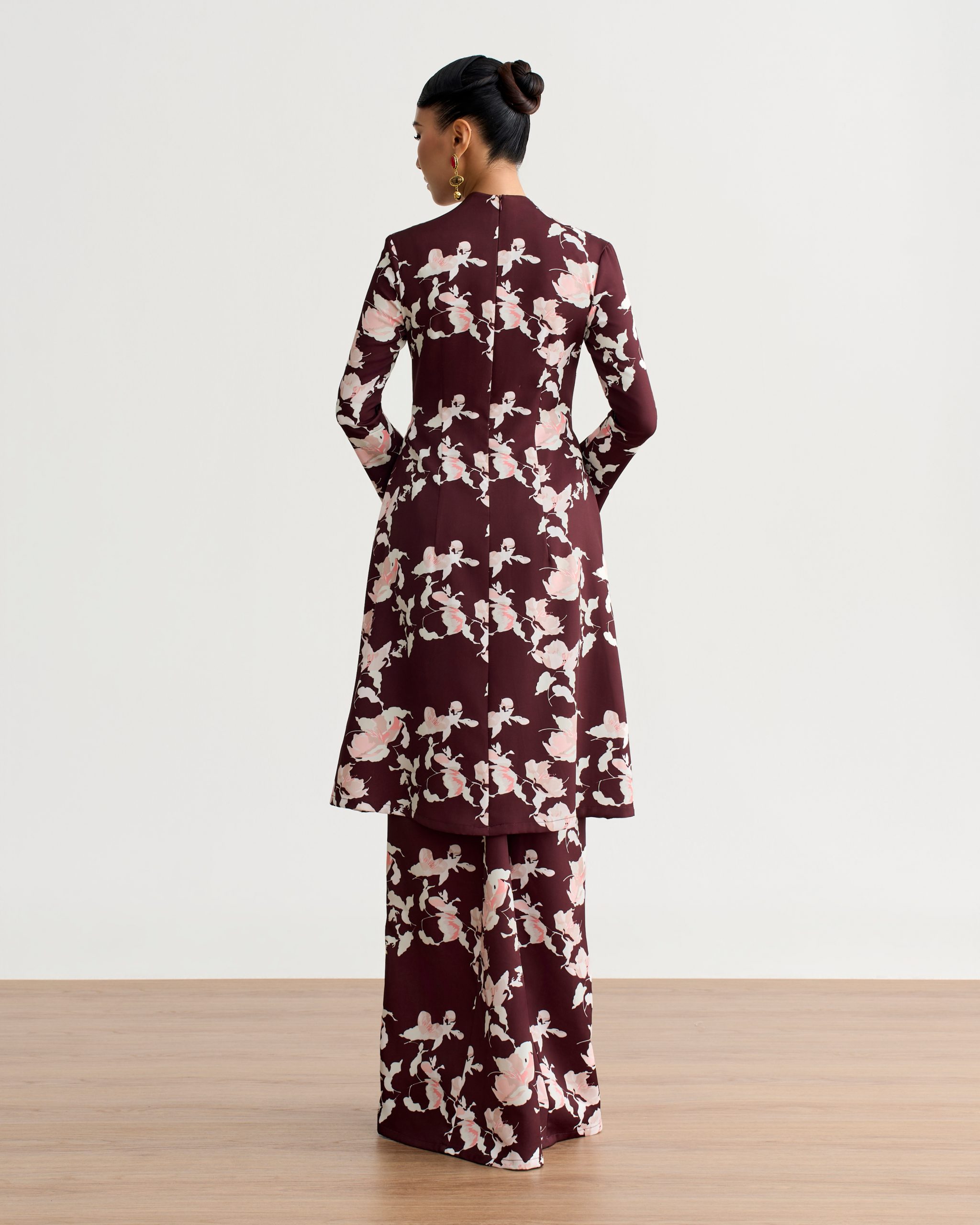 Crafted from soft poly crepe, the Zehra Kurung Pahang drapes beautifully, making it perfect for festive occasions or sophisticated everyday wear.