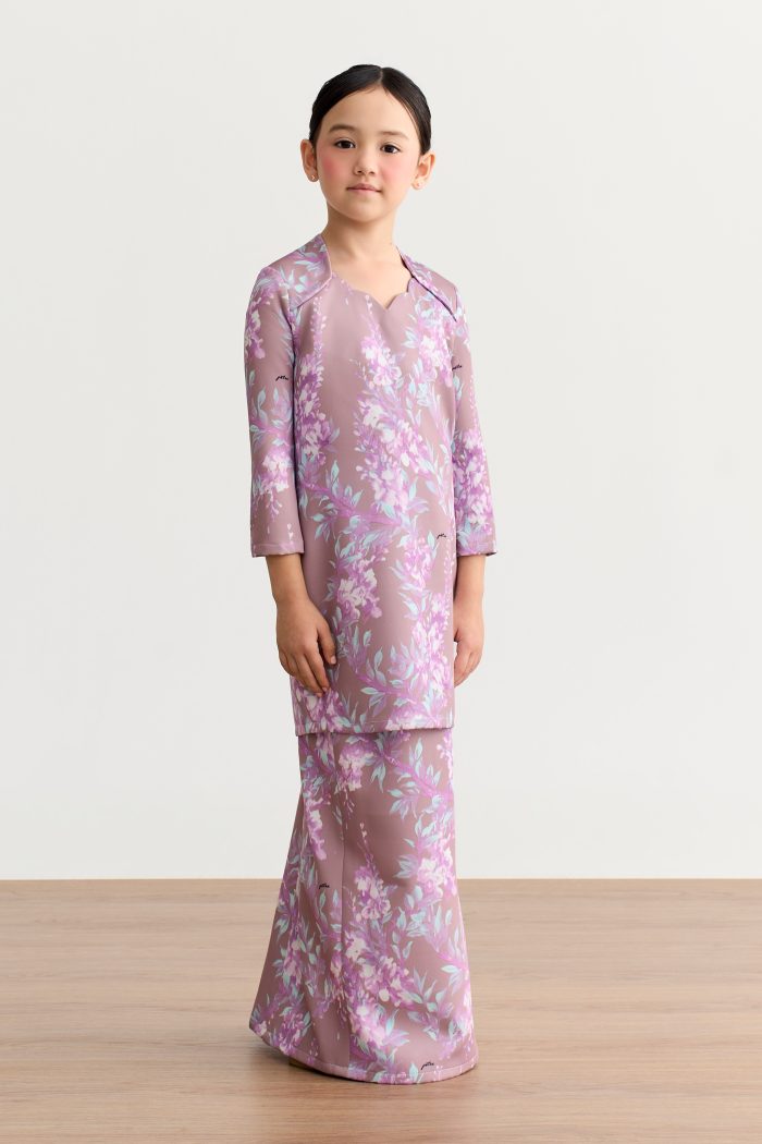 RM99.50Hailey kids in the same match as Hailey Kurung with the same floral motives and sage green or soft yellow background. *Pre-order only. Delivery will be carried out in the 2nd week of Ramadhan 11-17 Apr* Details: Kurung modern silhouette Ruffles on collar Mini puffy shoulder Mermaid skirt Back zipper for top Zip and hook fastening…